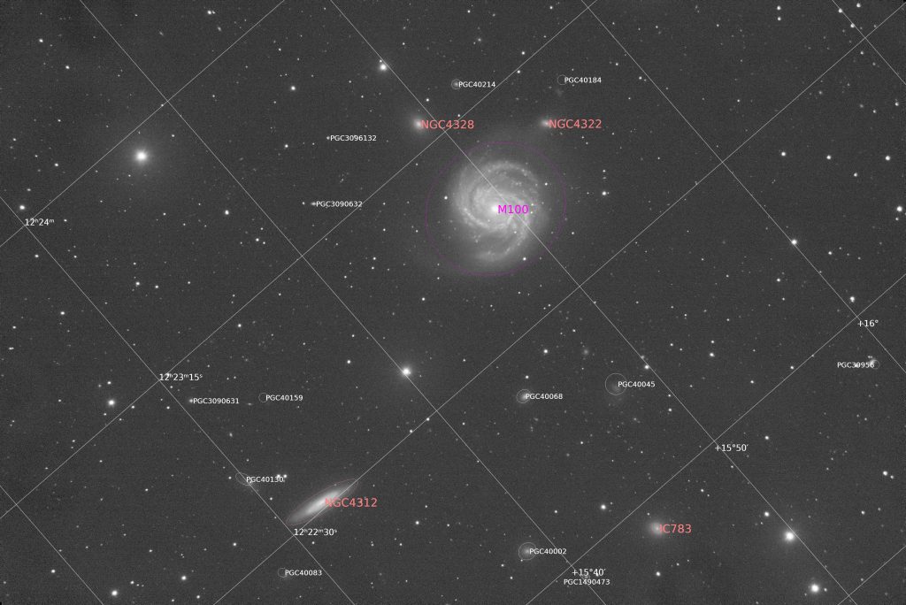Messier 100 (M100) est une galaxie bien connue située dans la constellation de la Chevelure de Bérénice.